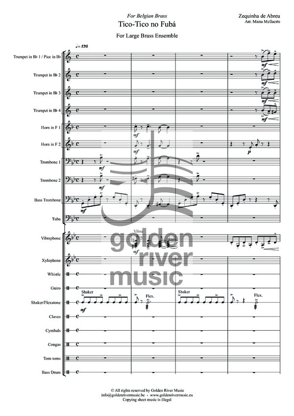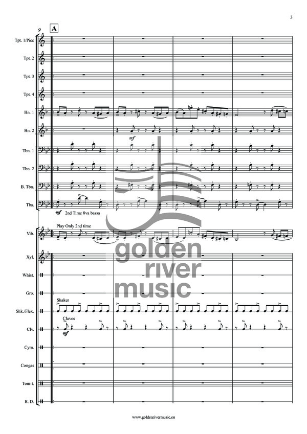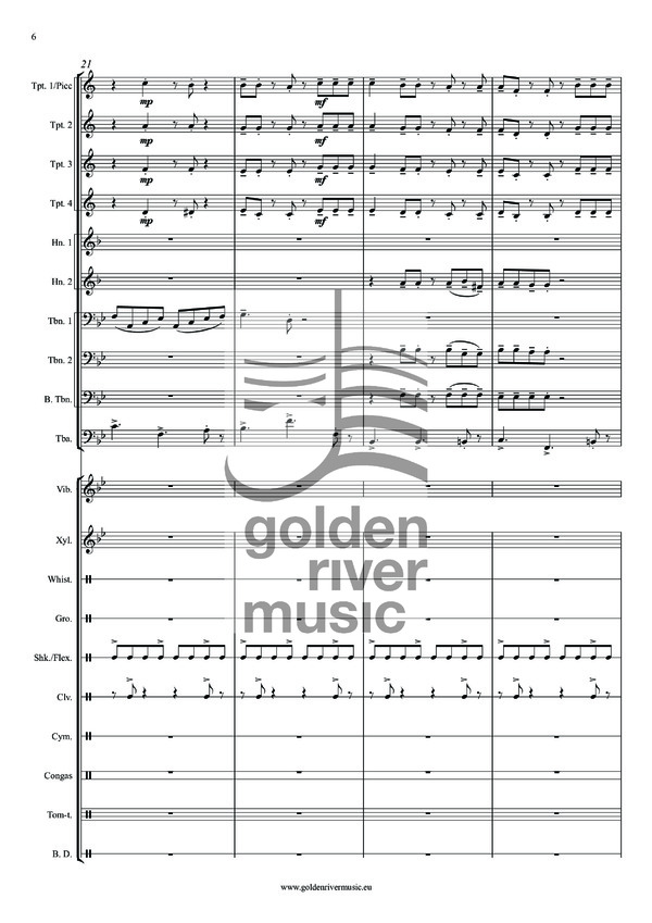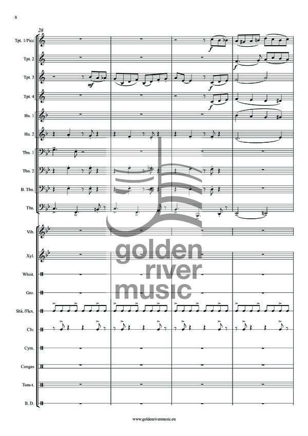 for large brass ensemble: 4tpt/2hn/3tbn/tuba/10perc Trompeten, 2 Hörner, 3 Posaunen, Tuba und 10 Percussion