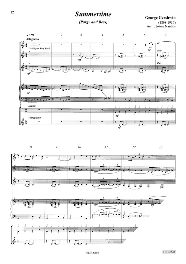 Verlag: Editions Marc Reift Ausgabe: NotenArt-Nr.: EMR 6200 / EMR 6200