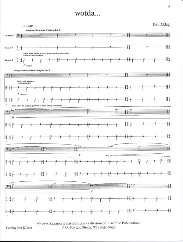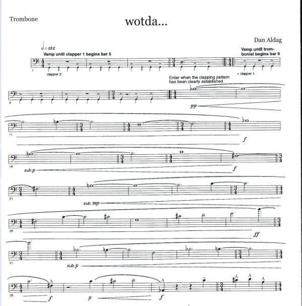 für Posaune und 2 Leute aus dem Publikum die einen bestimmten Rhythmus klatschen