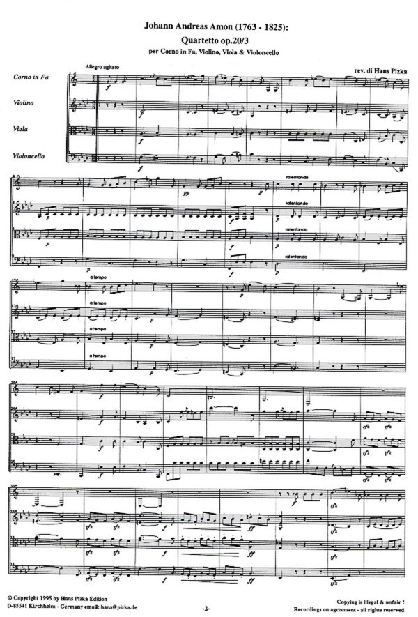 für Horn + Streichtrio (Violine, Viola + Violoncello)