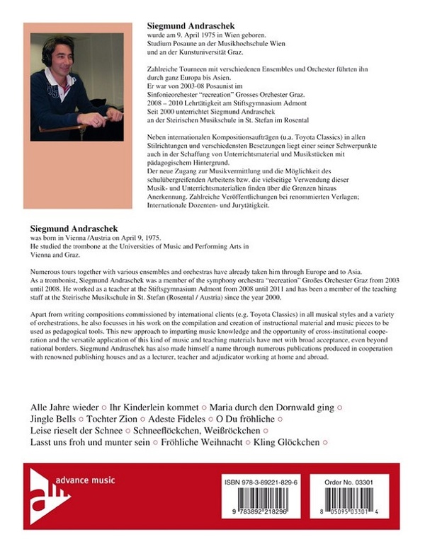 Eine Sammlung traditioneller Weihnachtslieder für drei Posaunen. Ein "must have" für den Weihnachtsmarkt. Optimal für MusikschülerInnen, aber auch "praktisch" für Profis.