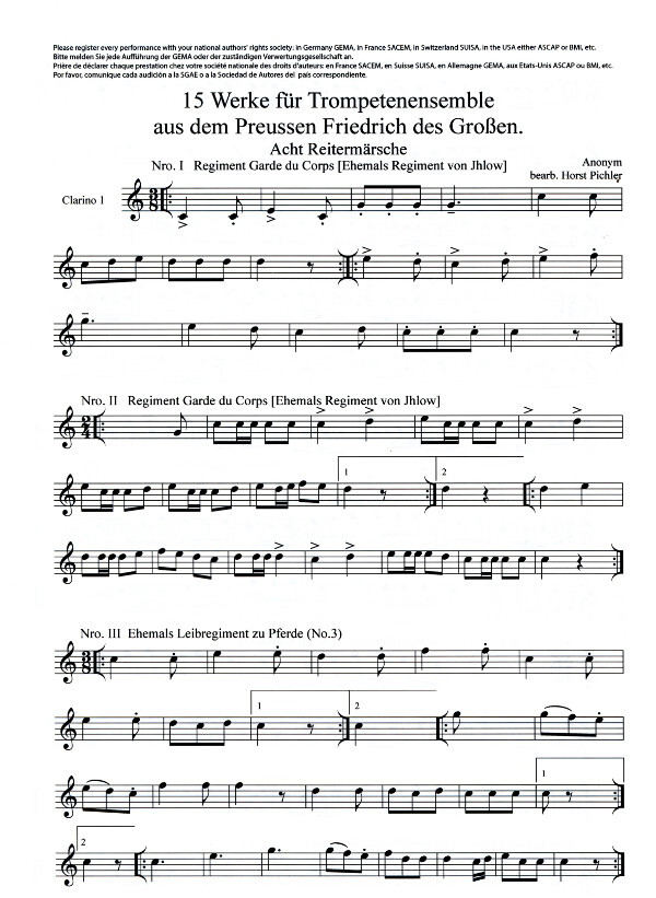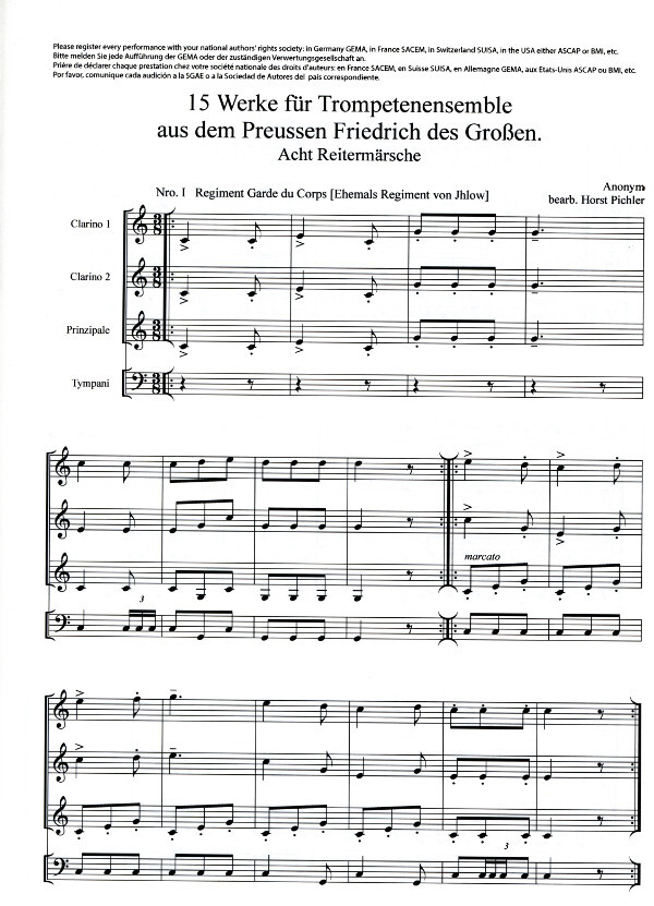 15 Werke für Trompetenensemble aus dem Preussen Friedrich des Großen