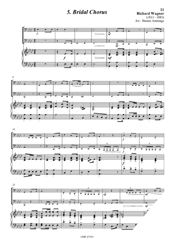 Wedding March (Mendelssohn) / Trumpet Voluntary (Clarke) / Aria (Bach) / Trumpet Tune (Purcell) / Bridal Chorus (Wagner)