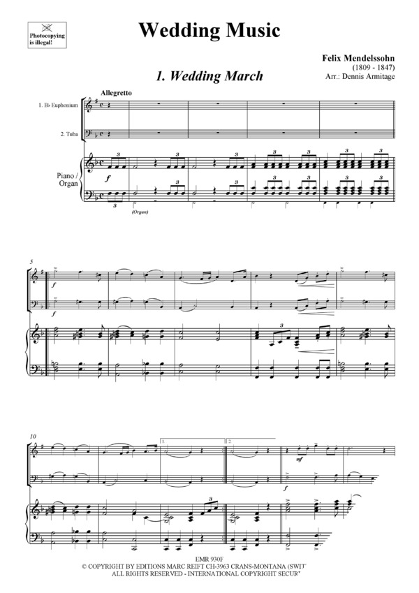 Wedding March (Mendelssohn) / Trumpet Voluntary (Clarke) / Aria (Bach) / Trumpet Tune (Purcell) / Bridal Chorus (Wagner)