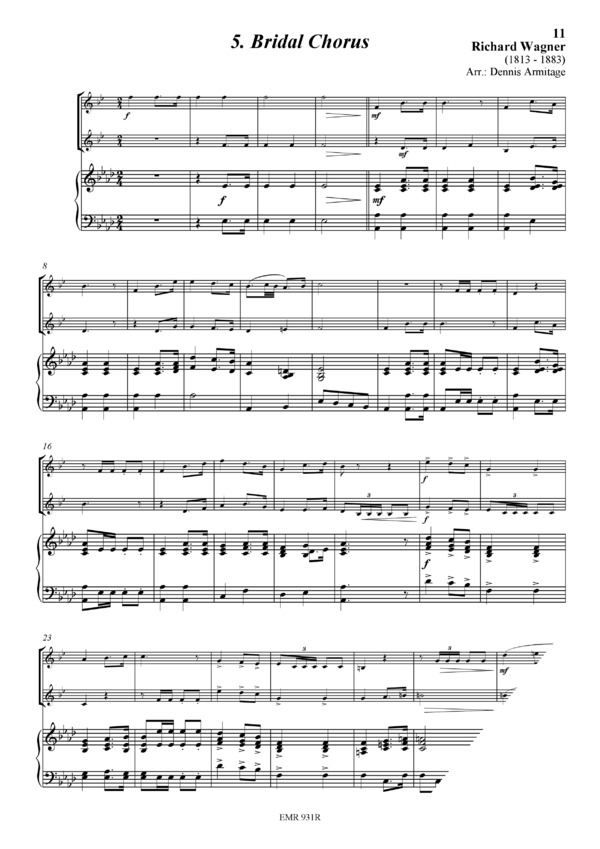 Wedding March (Mendelssohn) / Trumpet Voluntary (Clarke) / Aria (Bach) / Trumpet Tune (Purcell) / Bridal Chorus (Wagner)