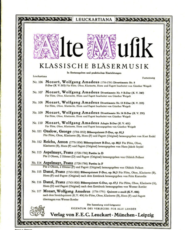 für 2 Oboen, 2 Hörner + Fagott