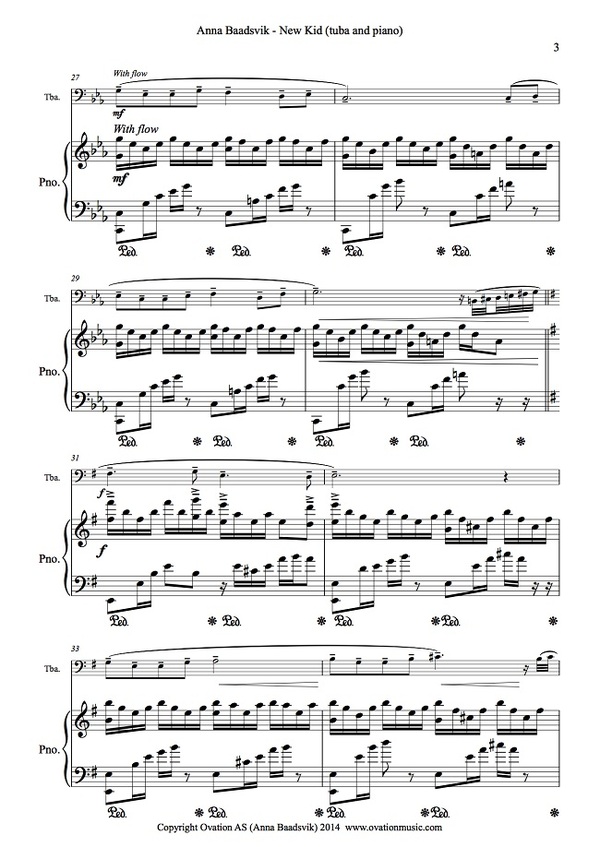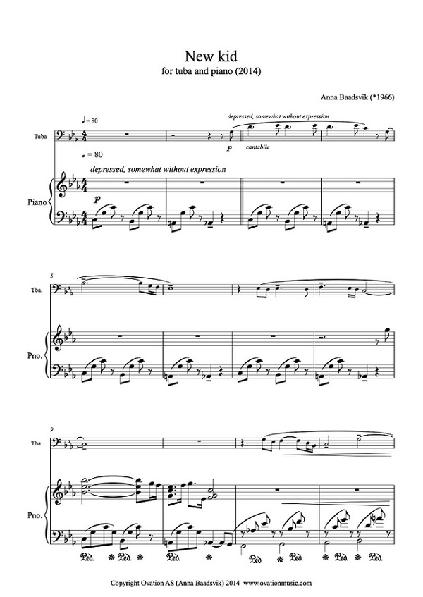 A lyrical and medium demanding piece for tuba and piano. Piano score, solo part in bass clef, solo part in EB treble clef