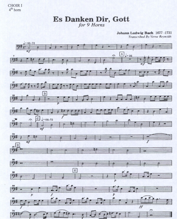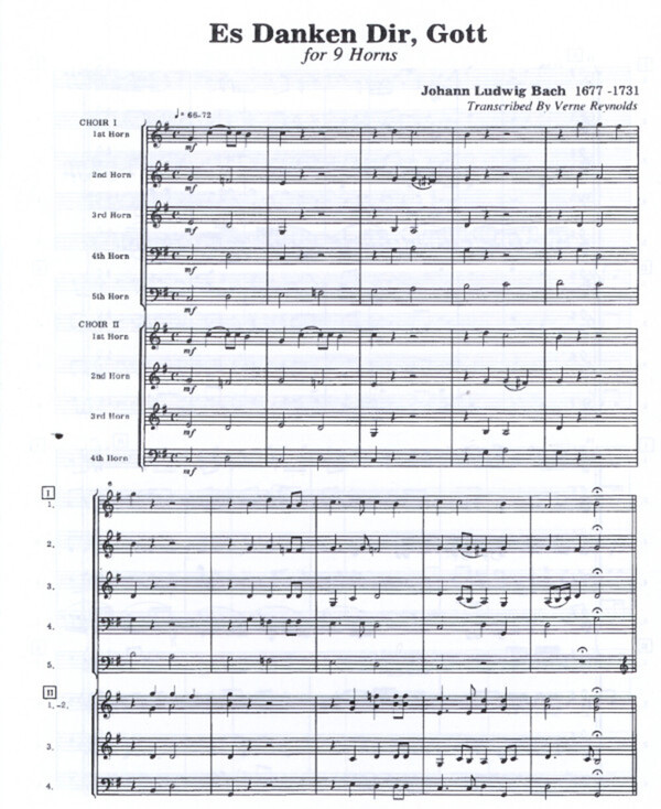 zwei-chörig nicht sehr hoch 6. Horn einmal bis a'' 4. + 9 . Horn im Baßschlüssel 5. Horn teilweise im Baßschlüssel