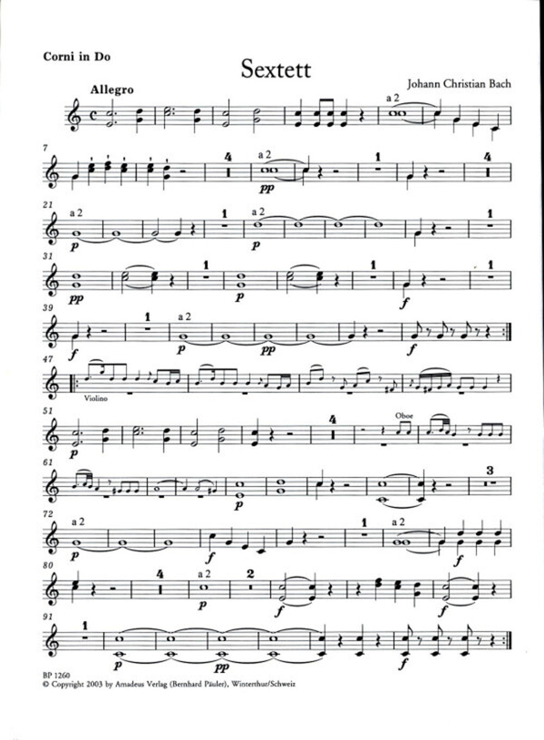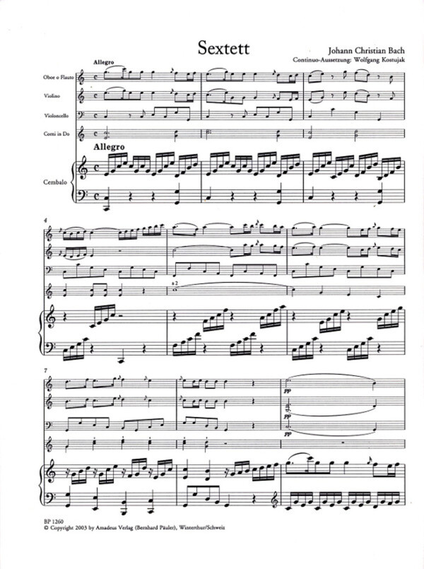 für Oboe, Violine, Violoncello, 2 Hörner ad lib. + obligates Cembalo