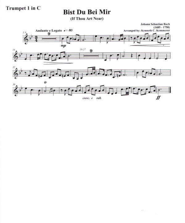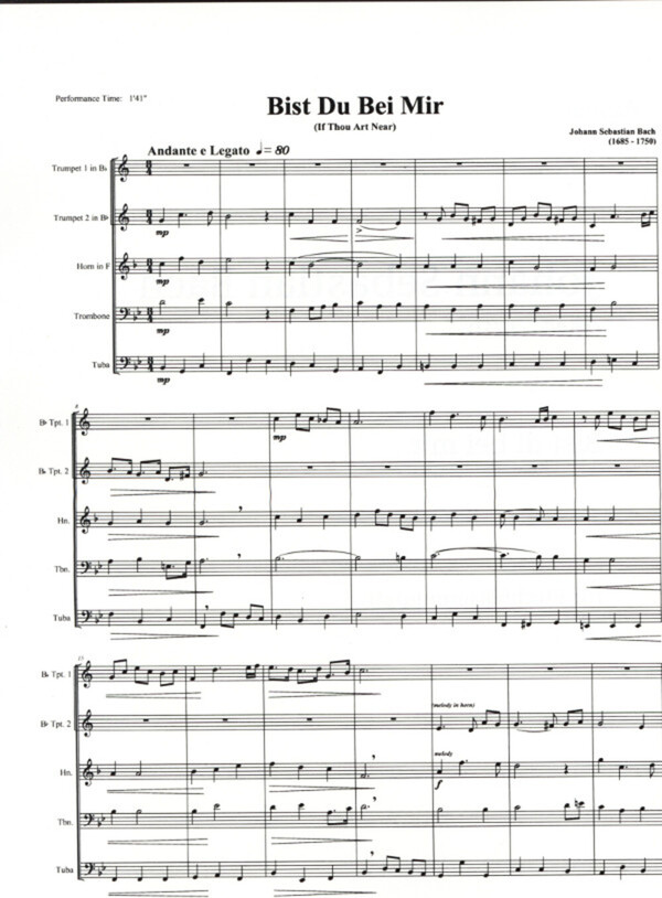 gelungene Bearbeitung des Bach Klassikers Melodie wechselt zwischen den beiden Trompeten und dem Horn