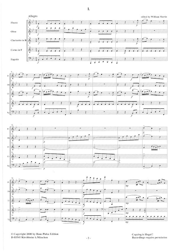 für Flöte, Oboe, Klarinette, Horn, Fagott