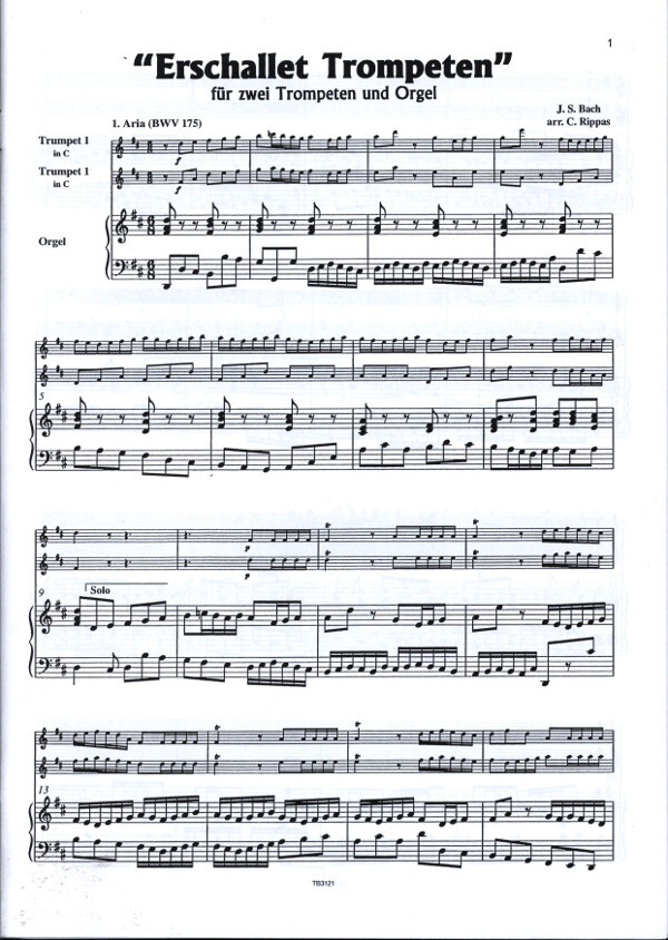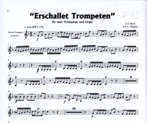 Inhalt: Partitur/Orgelstimme Stimme für Piccolo-Trompete 1 in Hoch-A Stimme für Trompete 2 in C Stimme für Piccolo-Trompete 2 in Hoch-A