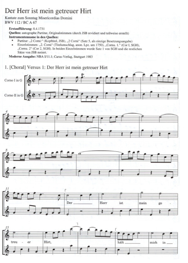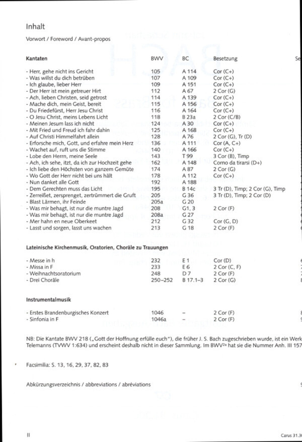 Nachdem alle vier Trompetenbände (Bd. 1-4) und der erste Hornband (Bd. 5) der Reihe Bach for Brass erschienen sind, kommt nun mit Band 6 der zweite der beiden Bände für Horn. Auch dieser Band erscheint in einem großzügigen, praxisgerechten Notensatz in Stimmenpartitur, mit Taktzahlen, Stichnoten, Paukenstimmen - wo vorhanden - sowie den wichtigsten Informationen zur Entstehung, zu Besetzungsangaben in der Quelle u.a.m. Ein instruktives Vorwort (deutsch, englisch, französisch) und Faksimiles vervollständigen das Bild. Die von erfahrenen Wissenschaftlern und Praktikern zum ersten Mal nach den Originalpartituren und -stimmen erarbeiteten Bände wollen heutigen Musikerinnen und Musikern, die eine authentische Interpretation von Bachs Werken anstreben, ein zuverlässiges Material für Studium, Unterricht und Aufführungen an die Hand geben.