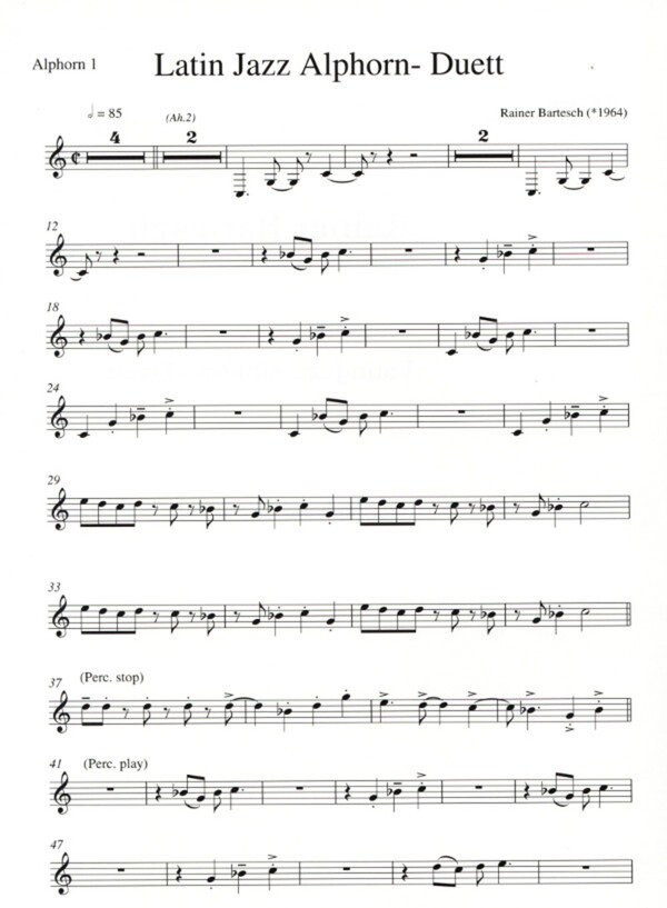 für 2 Alphörner, Drumset Perkussion (2 Spieler)