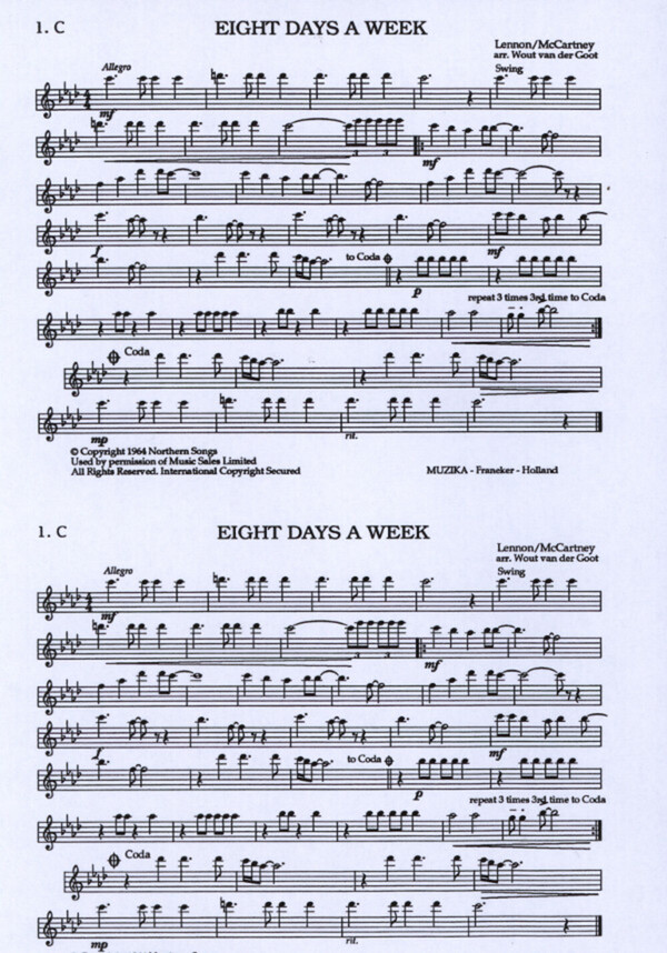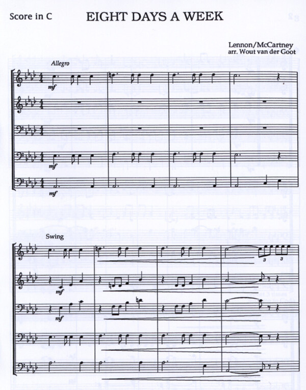 4. Stimme in C im Baßschlüssel, B im Baß-/Violinschlüssel 5. Stimme. in C im Baßschlüssel, B/Es im Baß-/Violinschlüssel + Schlagzeug ad lib.