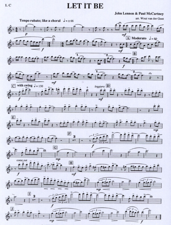 4. Stimme in C im Baßschlüssel, B im Violin-/Baßschlüssel 5. Stimme in C im Baßschlüssel, B/Es im Baß-/Violinschlüssel + Schlagzeug ad lib.