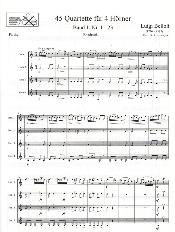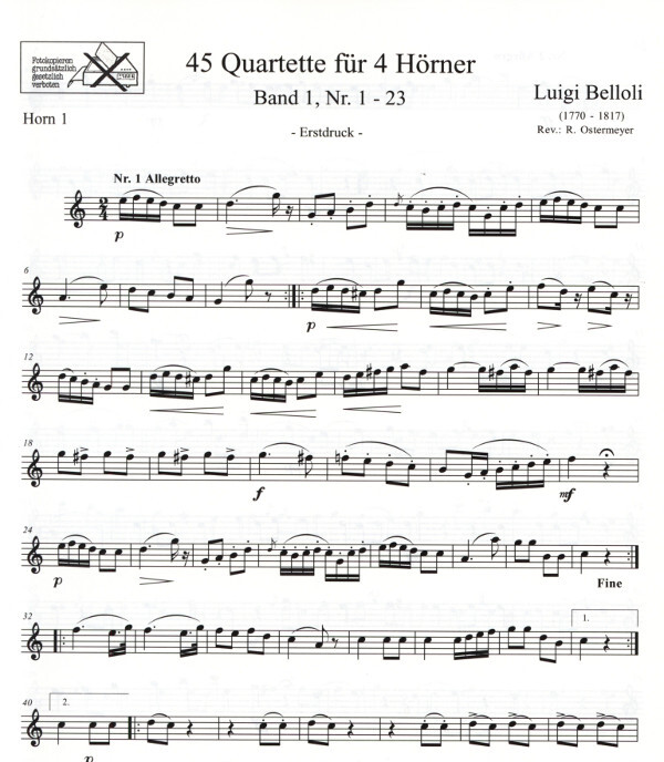 Für diese Edition wurden zahlreiche Quellen herangezogen. Hauptquelle war einen Abschrift von 39 Quartetten in Stimmen, sowie eine Partiturabschrift von 42 Quartetten, welche beide um 1830 angefertigt wurden. Letztere stammt von Carlo Alinovi, welcher vom 1. Februar 1826 bis am 4. Oktober 1829 bei Bellolis Bruder Agostino in Mailand Horn studierte. Bellolis Quartette sind, gerade im Blick darauf, das er noch keine Ventilinstrumente kennen konnte, ausserordentlich in der chromatischen Behandlung der Instrumente.