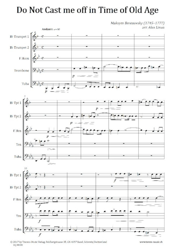 für Blechbläserquintett (2 Tromp, Horn, Pos, Tuba)
