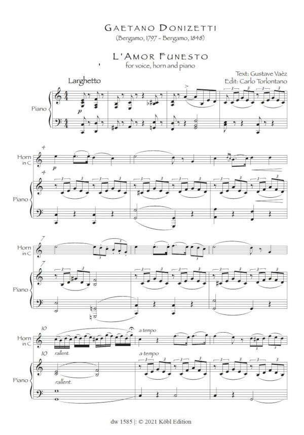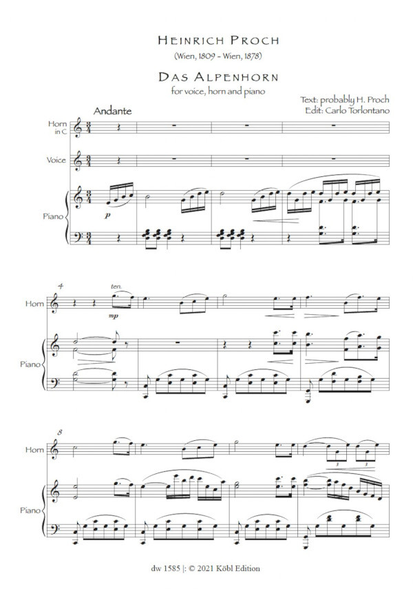 4 bekannte Stücke in einer sehr gelungenen Bearbeitung für Gesang (mittlere Stimmlage) Horn und Klavier