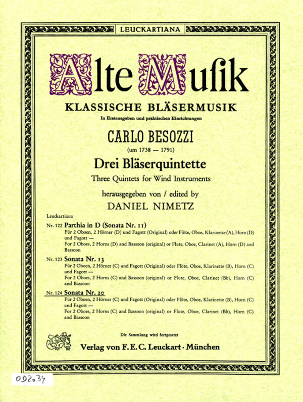 für 2 Oboen, 2 Hörner (in C) + Fagott oder bearbeitet für Flöte, Oboe, Klarinette, Horn (in C) + Fagott