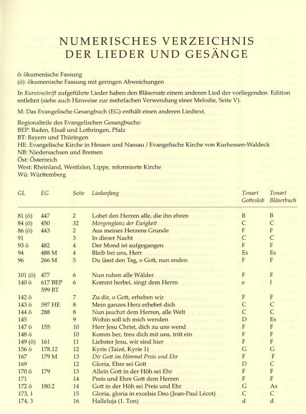 Anlässlich der Einführung des neuen GOTTESLOB in den Bistümern Deutschlands, Österreichs und Südtirols ist bei Bärenreiter neben dem Orgelbuch der Domorganisten (BA 11217) auch das Bläserbuch zum GOTTESLOB erschienen, herausgegeben von ausgewiesenen Kirchenmusikern und Bläserspezialisten.