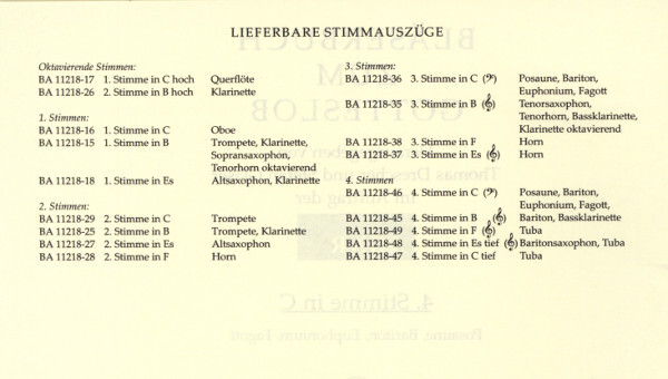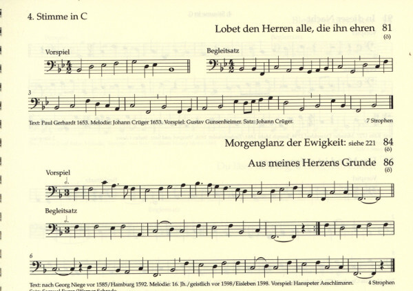 Die Ausgabe enthält 175 Vorspiele plus zugehörige Sätze zur Gemeindebe- gleitung. Neben einer Partitur jeweils in C- und in B-Stimmung bietet sie eine außergewöhnliche Vielfalt an Einzelstimmen. Angeboten werden sämtliche einschlägigen Blechblasinstrumente sowie verschiedene Stimmungen für Klarinette und Saxophon. Den verschiedenen Besetzungen von Bläserensembles wird dadurch in besonderer Weise Rechnung getragen.