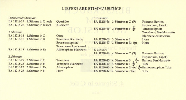 Die Ausgabe enthält 175 Vorspiele plus zugehörige Sätze zur Gemeindebe- gleitung. Neben einer Partitur jeweils in C- und in B-Stimmung bietet sie eine außergewöhnliche Vielfalt an Einzelstimmen. Angeboten werden sämtliche einschlägigen Blechblasinstrumente sowie verschiedene Stimmungen für Klarinette und Saxophon. Den verschiedenen Besetzungen von Bläserensembles wird dadurch in besonderer Weise Rechnung getragen.