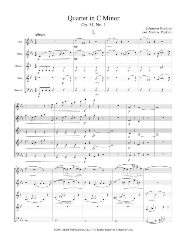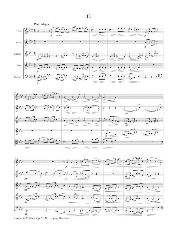 Originally published in 1873 when Brahms was 40. He reputedly had destroyed twenty prior quartets as being unworthy of an heir to Beethoven's throne. ("You have no idea how a man like myself feels when he constantly sees a giant like Beethoven behind him.") Instrumentation: Flute, Oboe, Clarinet, Horn, Bassoon