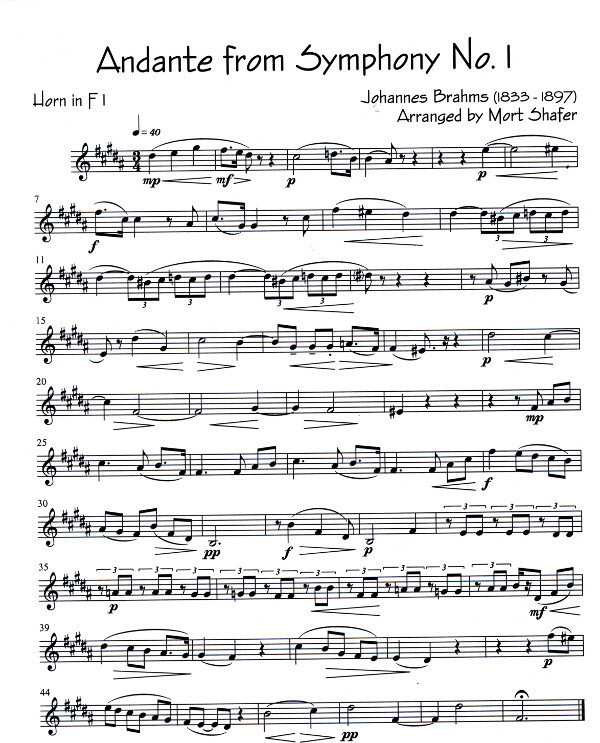 Brahms long awaited first symphony is recognized as one the finest works in history. Excerpts from the Andante movement make up this wonderful arrangement.