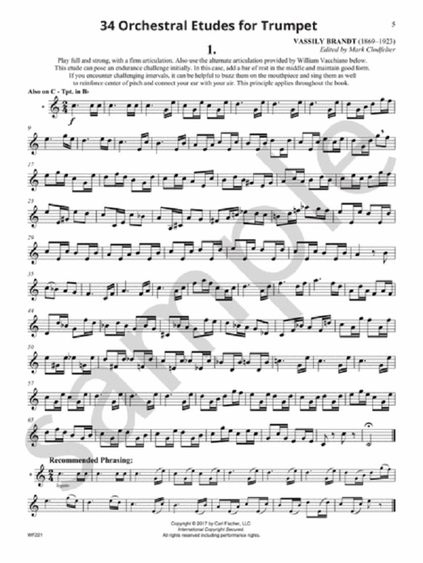 The Orchestral Etudes composed by Vassily Brandt have been used for over a century to prepare trumpet players to play many of the standards in the orchestral repertoire. This new edition by acclaimed trumpet performer and prominent pedagugue Mark Clodfelter aims to foster a renewed awareness of note groupings, sequences, stylistic emphasis, and syncopation. Additionally, Professor Clodfelter has proposed transpositions for many of the etudes, utilizing Bb, C and Eb Trumpets. Geared towards a more global understanding of the instrument, this new approach offers a fresh, indispensable perspective for any serious trumpet student's library.