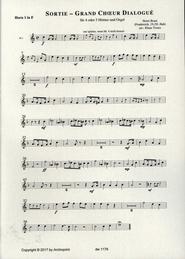 Inhalt: Partitur Einzelstimmen für Horn 1 in F Horn 2 in F Horn 3 in F Horn 4 in F ad libitum Horn 5 in C Horn 5 in F