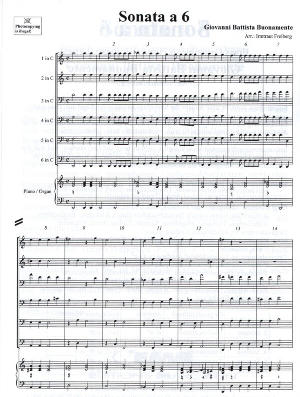 für 1. + 2. Stimme in B/C 3. Stimme in F + Violin - + Baßschlüssel 4. + 5. Stimme in Violin-, Baßschlüssel + F 6. Stimme im Violin- + Baßschlüssel + Klavier (Orgel)