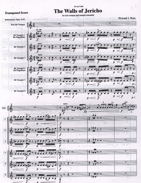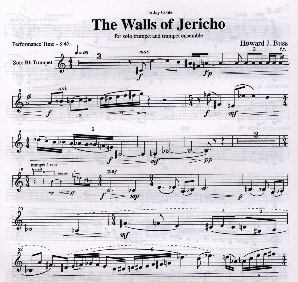 2003 komponiert inspiriert von der biblischen Geschicht "Joshua and the Battle of Jericho" 8:45 Min. 1. + 4. Trompeten auch Flügelhorn
