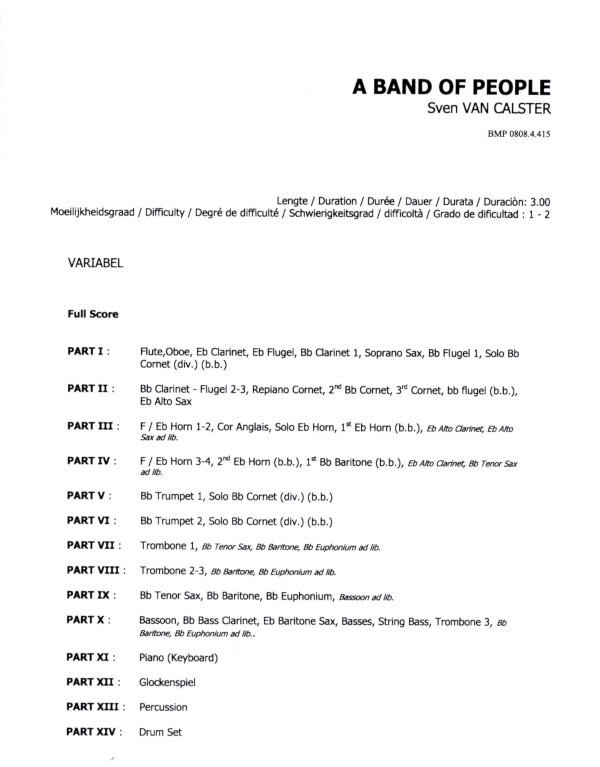 A Band of People für 10-part Windensemble and Percussion