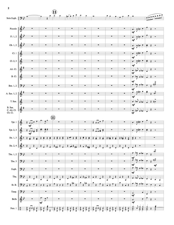 Euph onium im Baßschlüssel + Blasorchester (Piccolo-Flöte, 2 Flöten, 2 Oboen, 3 K larinetten, Alt-Klarinette, Bass-Klarinette, 2 Fagotte, 2 Alt-Saxophone, Tenor-Saxophon, Bariton-Saxophon/Contra-Alt-Klarinette/Kontrabass-Klarinette, 3 Trompeten, 4 Hörner, 3 Posaunen, Euphonium, Tuba, Kontrabass, Pauken, Glocken + Percussion)