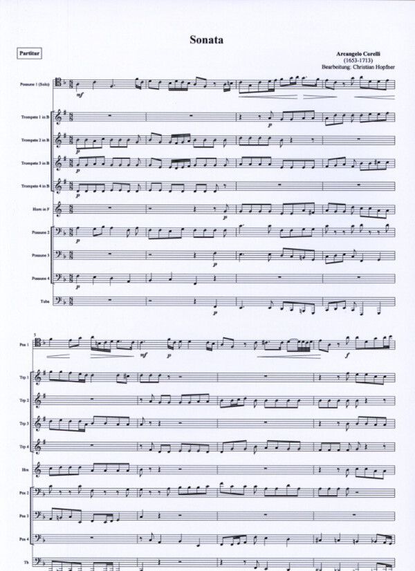 für Solo-Posaune, 4 Trompeten in B, Horn in F, 3 Posaunen + Tuba