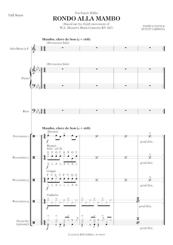 Soundbeispiel There is a statue of Wolfgang Amadeus Mozart in Havana. On my first visit toCuba in 2017, I was told by one of the local musicians: Mozart would havebeen been a good Cuban. I was intrigued by this comment and thus began theinspiration for this album which was recorded in Havana, Cuba in January,2020 and released by Alpha Classics on July 10th, 2020.At the time of my first visit to Cuba, I had already been dancing salsa formany years so I knew and loved Cuban popular music. Salsa, son, mambo, bolero these are my idea of musical heaven. But the Cuban classical scene wascompletely unknown to me. I had been asked to give a French horn masterclasson my first trip there but had no idea what to expect how many horn playerscould there be in Cuba? I was blown away by how many turned up to class, howwell they played and how full of music they all were. I felt an immediateconnection with my new Cuban musician friends and through them, I started todiscover the classical music culture of Cuba. Mozarts statue in Old Havanabegan to make complete sense. I decided then and there to do what I could toraise awareness for the wonderful classical music-making going on in Cuba.Thus the Mozart y Mambo project was born. This exciting, unique and, Iadmit, somewhat crazy project combines much-loved solo pieces for French hornby Wolfgang Amadeus Mozart with traditional Cuban music. These are perhapsnot the most obvious pairing but to all those who ask me, why record Mozartin Cuba, I can only say once you hear it, you will know why. The energy andpassion of these musicians is so inspiring and I hope you will be able tohear the special atmosphere we created during the recording. This project hasbeen one of the highlights of my life and we are so happy that 3b Produktionwere with us and made a wonderful documentary about the project called ACuban Journey with Sarah Willis, which was broadcast on Deutsche Welle TV.I am happy and proud to have worked on this album with the Havana LyceumOrchestra, a chamber orchestra made up of young and talented Cuban musiciansand their Cuban conductor José Antonio Méndez Padrón (Pepe), and alsowell-known musicians from the Cuban popular music scene. I could not havewished for a more inspiring and hard working team of musicians with whom torealise this project. Part of the proceeds from the album will go towardsbuying instruments for the musicians of the Havana LyceumOrchestra.!Disfrutar!Havana, Cuba 2020