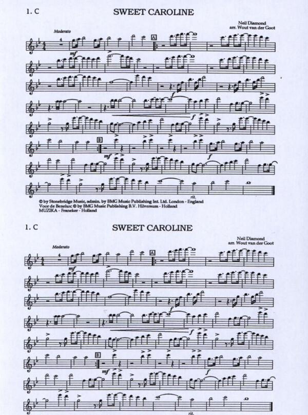 4. Stimme in C im Baßschlüssel, B im Baß-/Violinschlüssel 5. Stimme in C im Baßschlüssel, B/Es im Baß-/Violinschlüssel + Schlagzeug ad lib.