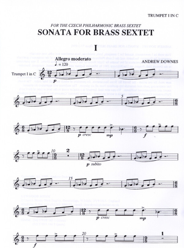 für 2 Trompeten in C, Horn in F, Tenorposaune, Baßposaune + Tuba