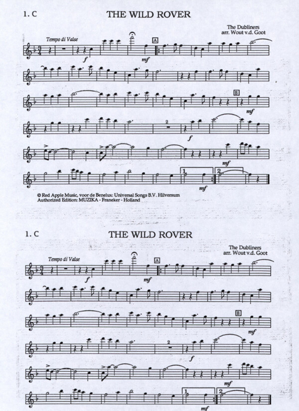 4. Stimme in C im Baßschlüssel, B im Baß-/Violinschlüssel 5. Stimme in C im Baßschlüssel, B/Es im Baß-/Violinschlüssel + Schlagzeug ad lib.