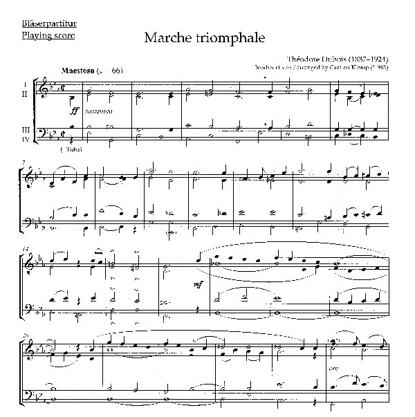 für 2 Trompeten, Posaune (Horn), Posaune (Tuba), Pauken + Orgel