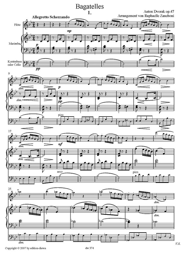 für Flöte, Marimba und Cello (Kontrabass)
