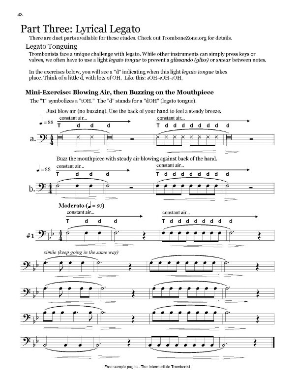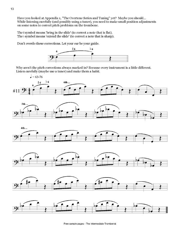Mouthpiece buzzing, tone and slide positions, lip slurs, rhythmic articulation