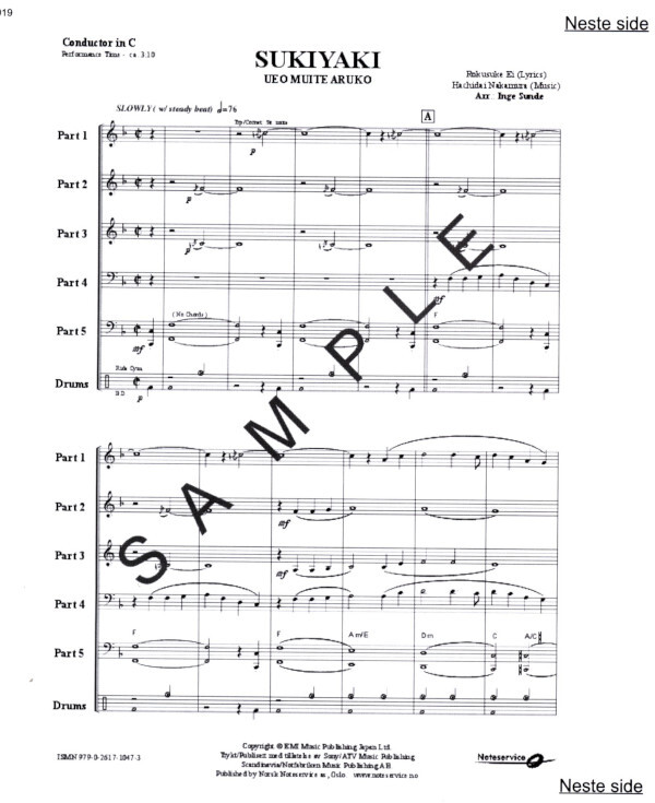 In this arrangement the well-known melody is presented by the different instrument parts, as it goes from a slowly intro into a faster 2-beats tempo with a slightly swing feel.