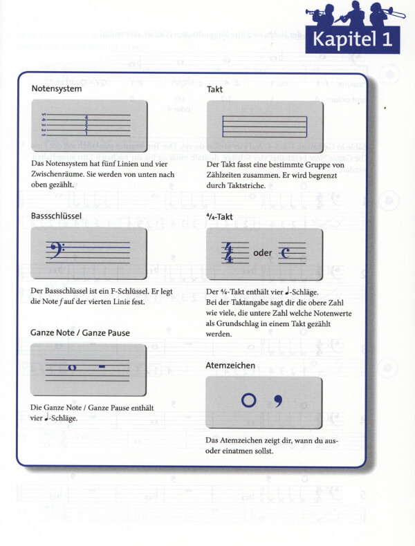 Diese Schule aus der Junior Band Reihe von Norbert Engelmann kann sowohl im Einzel- als auch im Gruppenunterricht verwendet werden: Die Schule ist in einzelne kapitel unterteilt, die den Stoff des leistungsabzeichens D1 verarbeiten. In den zahlreichen Übungen, Spielstücken, Etüden, Duetten und Trios wird der theoretische Lehrstoff praktisch verarbeitet.