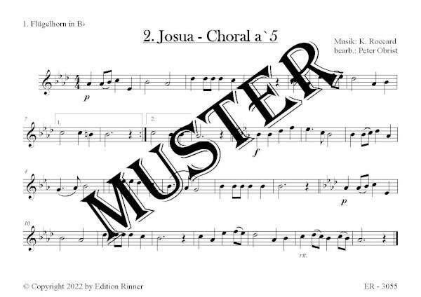2. Josua Choral a`4 (K. Roccard bearb.: Peter Obrist) 3. Ich bete an die Macht der Liebe a`4 (D. Bortnjanski bearb.: Erwin Feiß) 4. Deinem Heiland...a`4 (M. Haydn bearb.: Peter Obrist) 5. Heil der Welt a`4 (N.G.M. Asola bearb.: Erwin Feiß)