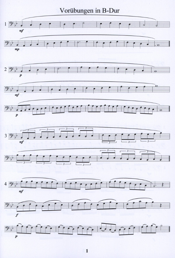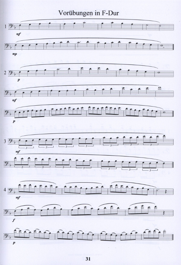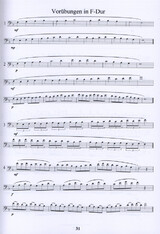geht durch alle Tonleitern (jede Tonleiter hat eine Seite mit verschiedenen Übungen) und dazu zu jeder Tonleiter Vorübungen (auch jeweils eine Seite mit verschiedenen Übungen) und daher sowohl für Anfänger wie auch Fortgeschrittene gedacht