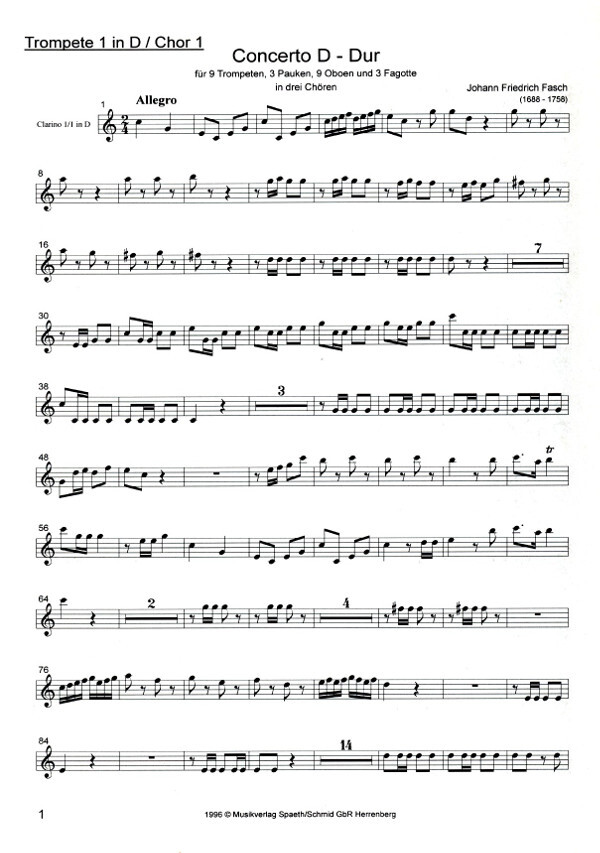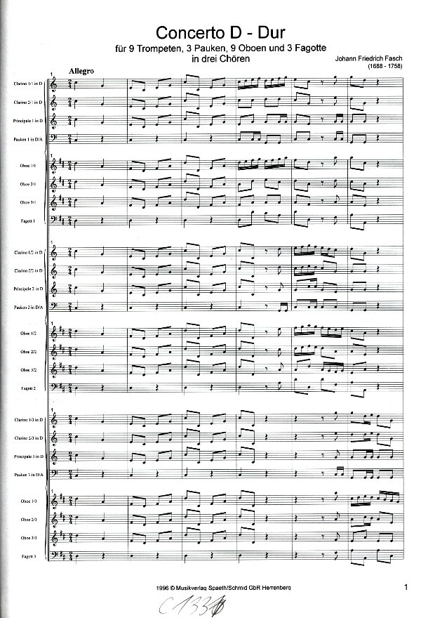für 9 Trompeten in D, 9 Oboen, 3 Fagotte + 3 Pauken
