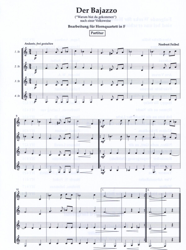 (aus "Der Bajazz o", alle 4 Stimmen sind im Violinschlüssel)