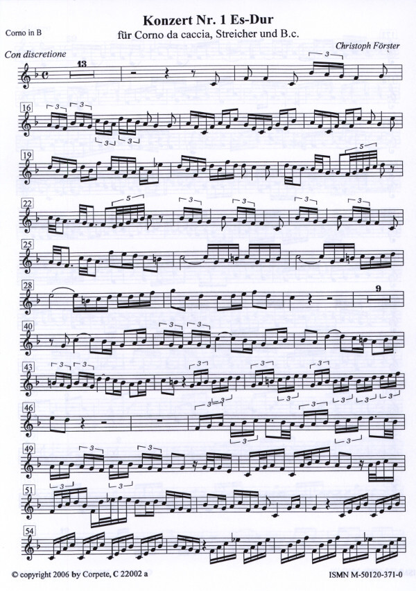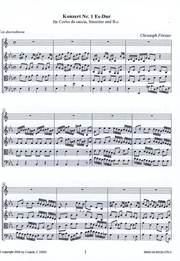 Konzert Nr.1 in Es-Dur für Corno da caccia in B, Streicher + B.c.